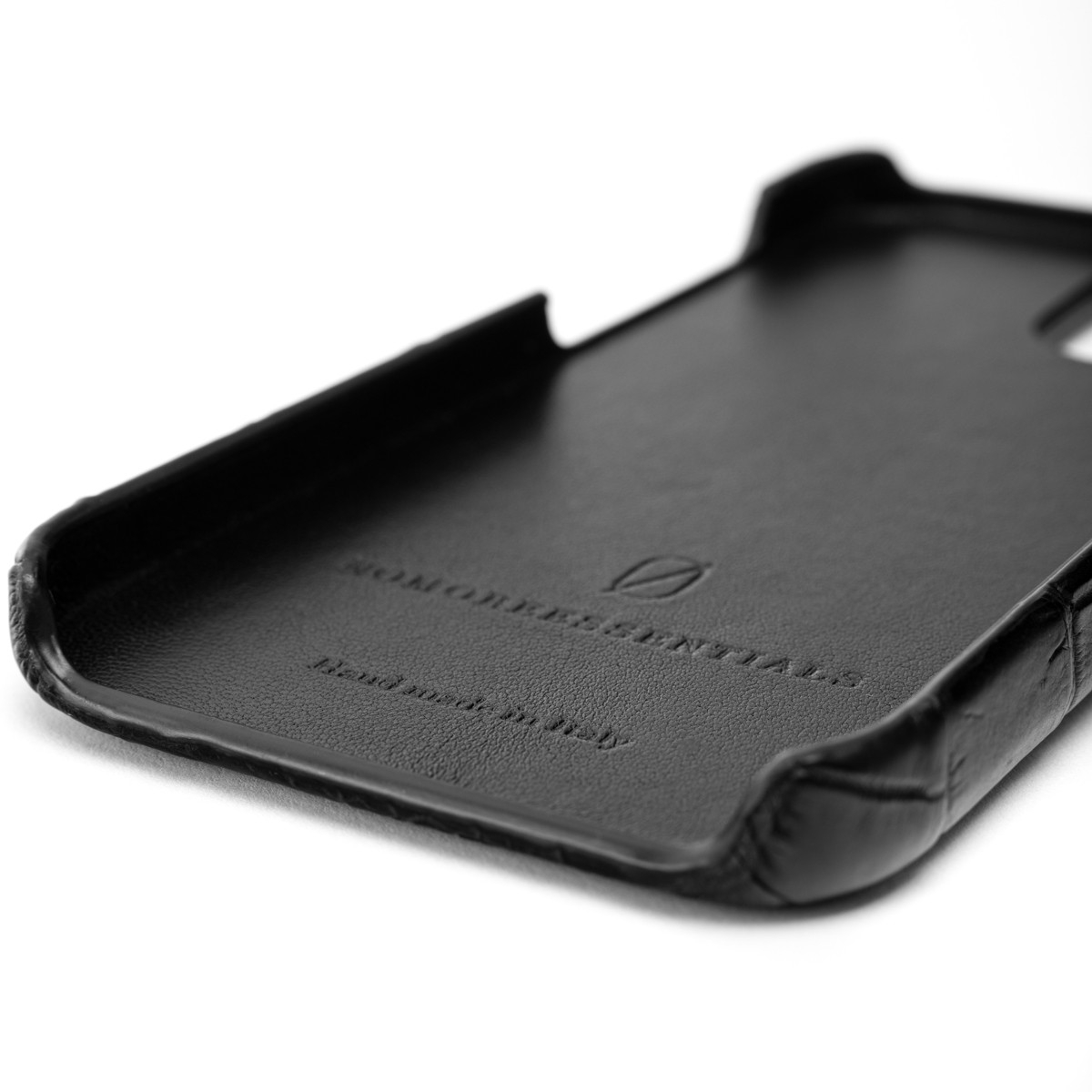 This classic yet distinctive mobile case is handmade in Europe from certified crocodile skin in black. Includes the brand logo in 18ct white gold with diamonds set on the stroke.
