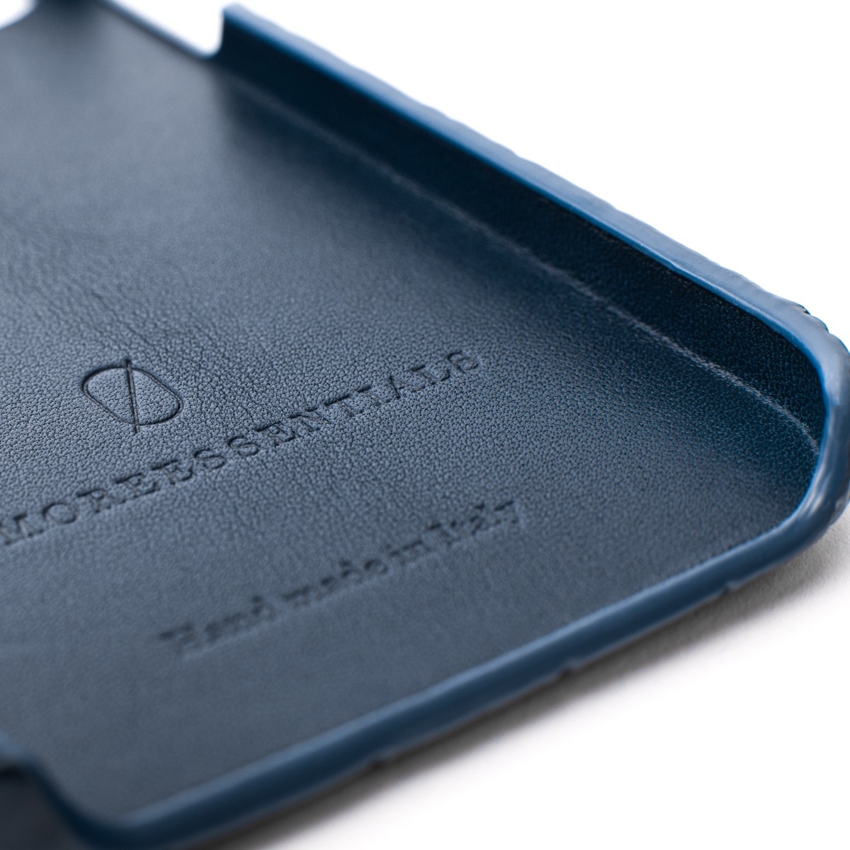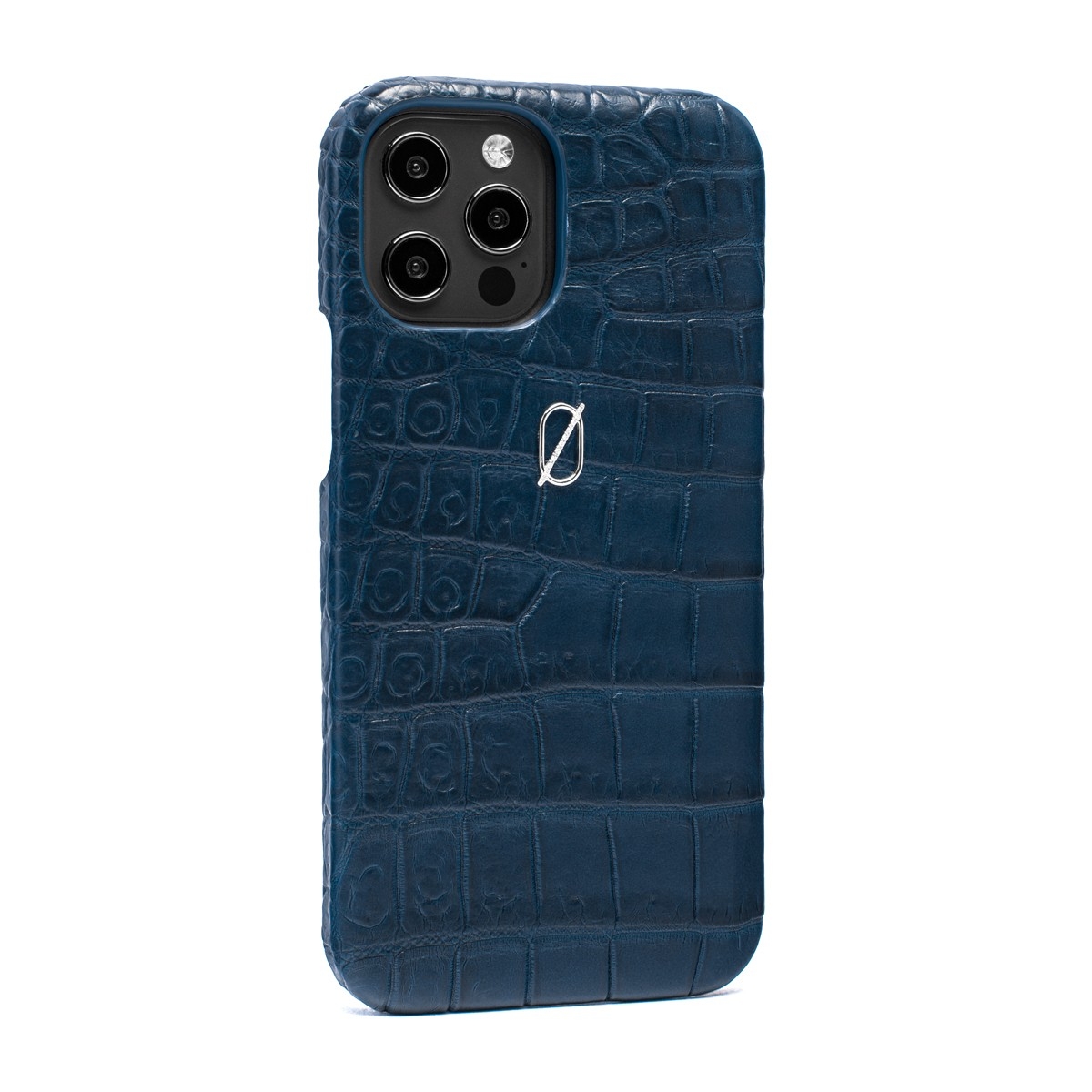 One-of-a-kind iPhone case made from certified crocodile skin in dark blue. Featuring the brand logo in 18ct white gold with diamonds set on the stroke. Handmade in Europe.
